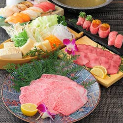 寿司、肉寿司、牛タン&厳選黒毛和牛しゃぶしゃぶ、すき焼きが食べ放題♪お祝いや記念日にも◎
